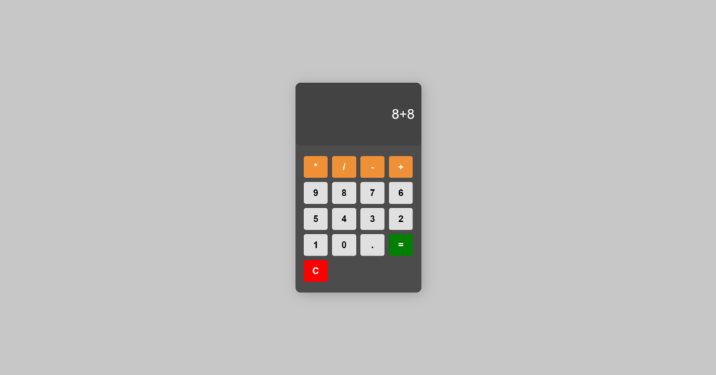Ik heb een rekenmachine gebouwd met HTML, CSS en JavaScript om mijn front-end vaardigheden te verbeteren en een beter begrip te krijgen van JavaScript-logica en gebruikersinteractie.